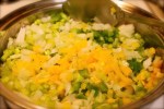 Beans – Coat medium pot with olive oil on medium-high heat. Add onions, bell peppers, and celery to warm pot. Saute with occasional stirring to brown vegetable mixture. Reduce heat to medium-low, add kidney beans and garlic salt, cover and simmer for 15 minutes.